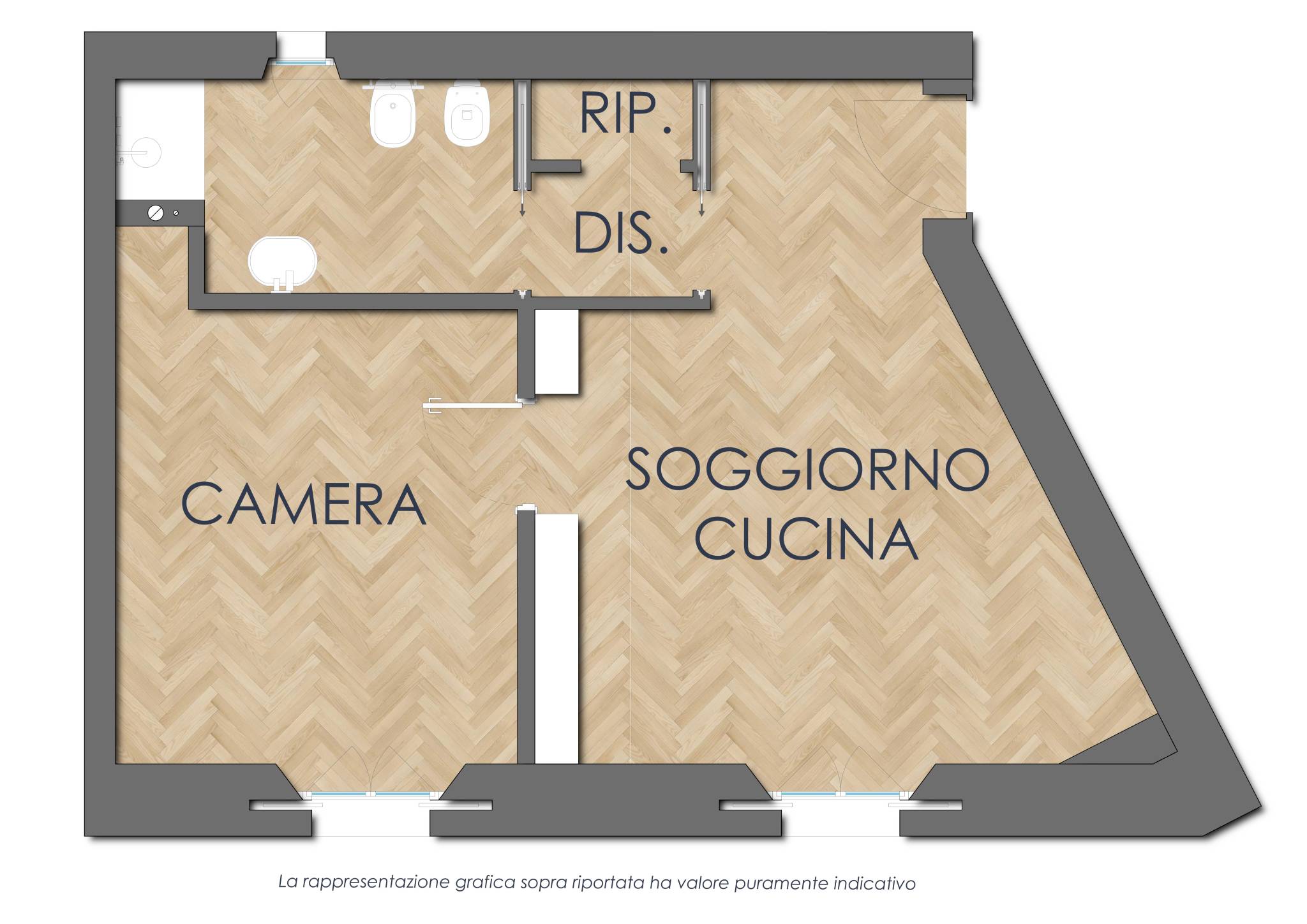 I mobili e le luci presenti all'interno dell'appartamento fanno parte di un allestimento finalizzato a far comprendere meglio gli spazi e verranno rimossi al momento della vendita; la casa non è mai stata abitata dopo i lavori di ristrutturazione.
